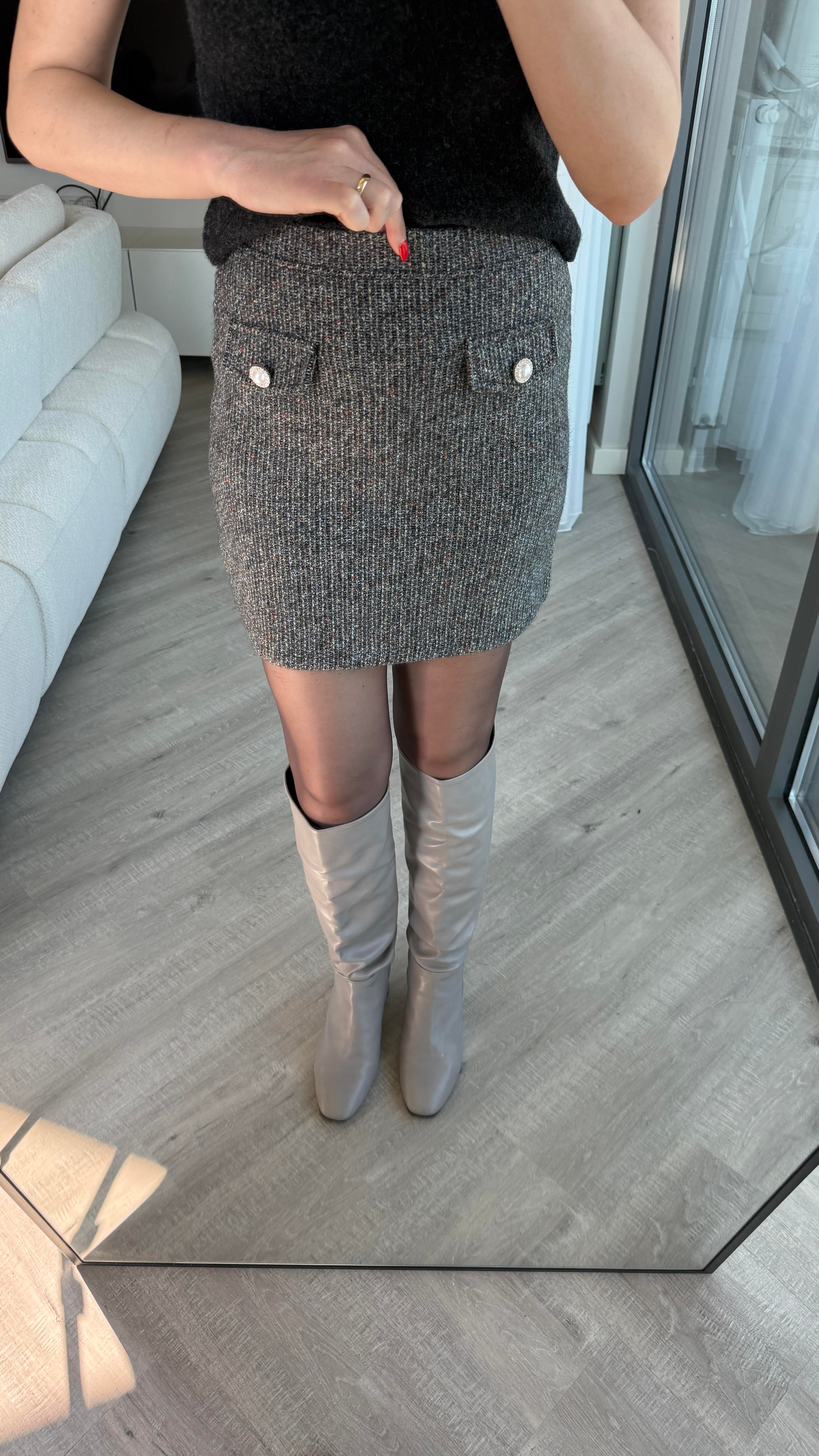 Gri Cep Detaylı Etek