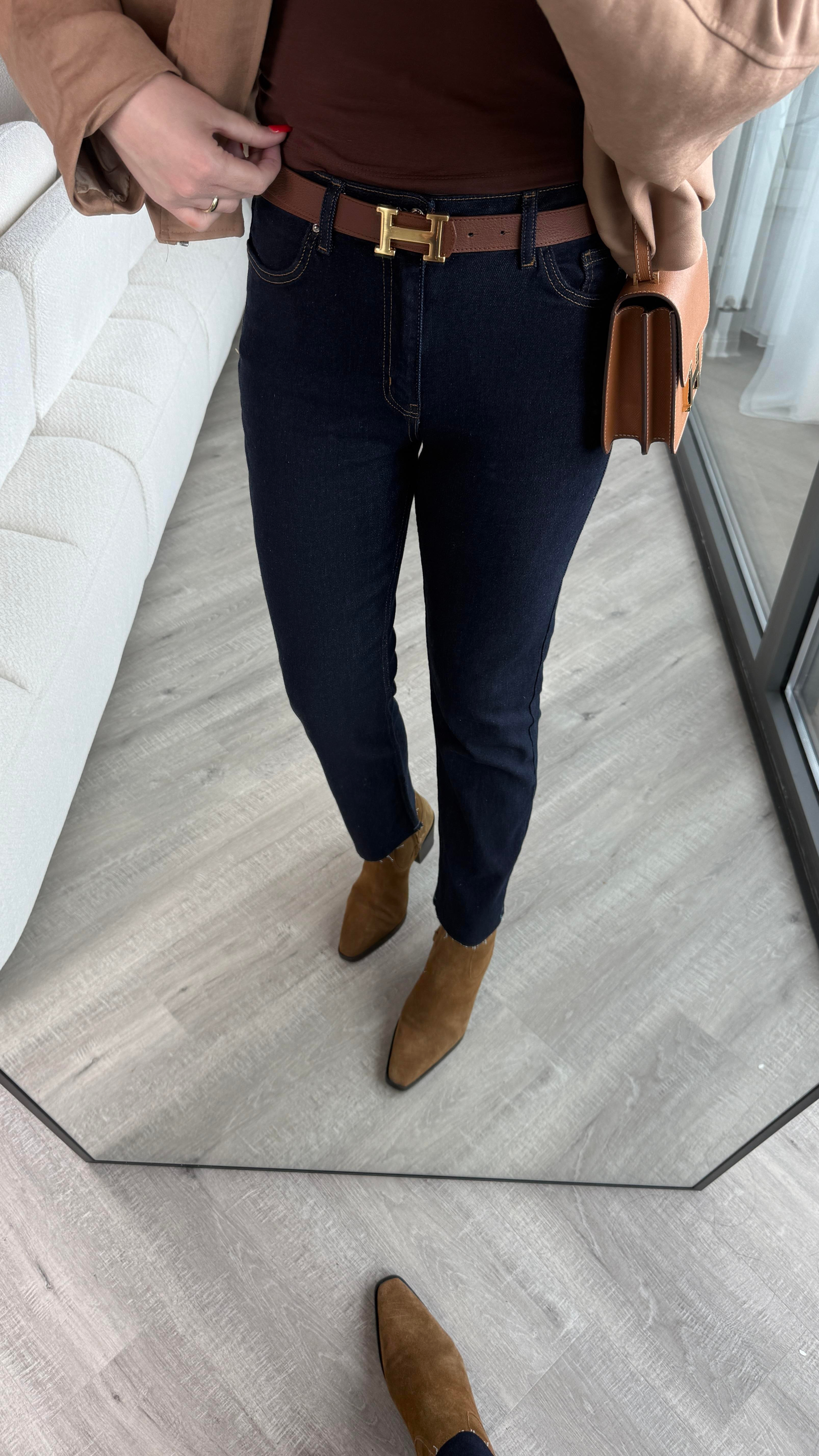 Koyu Lacivert Paça Kesik Straight Jean (005763)