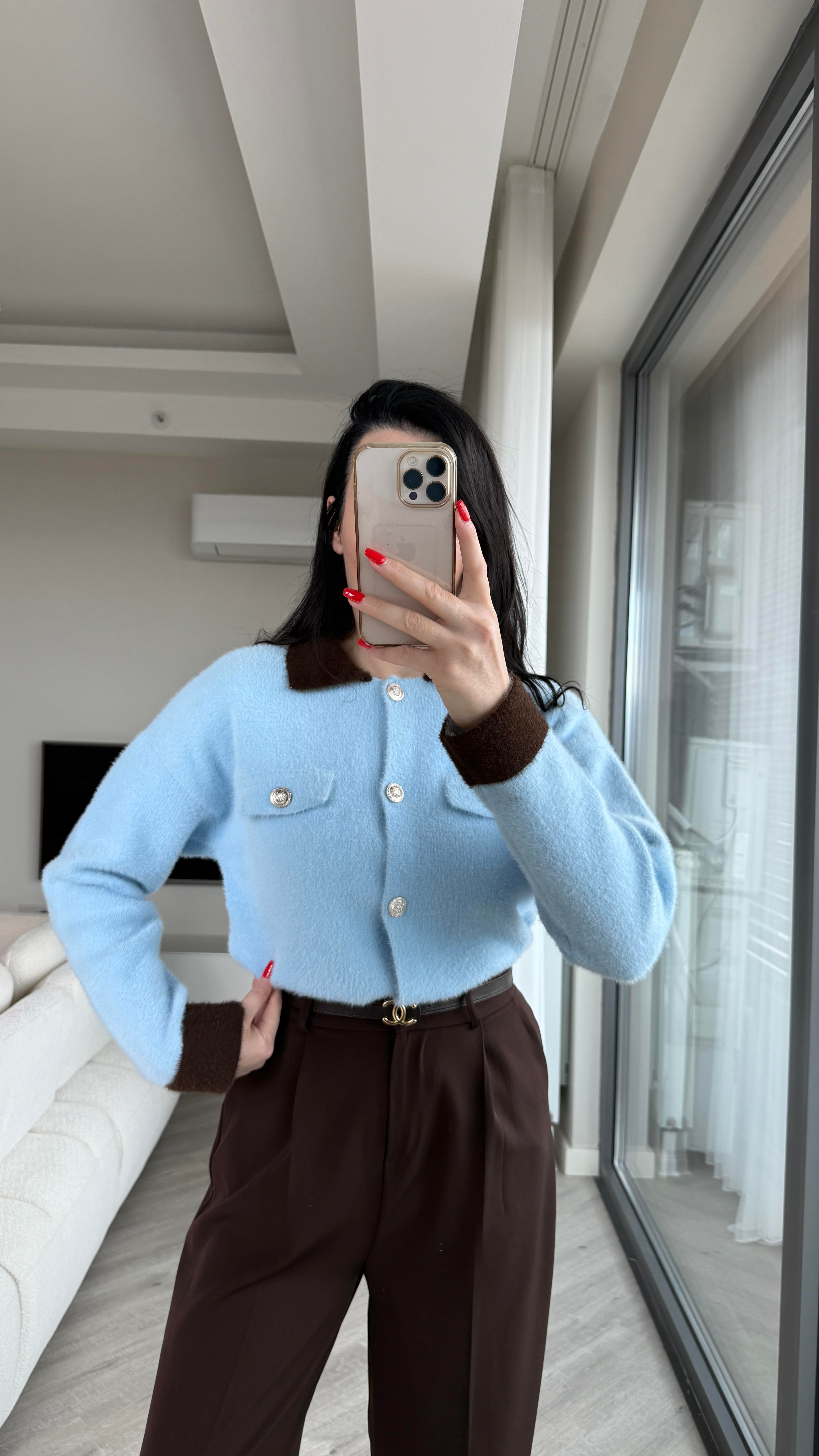 Mavi Kahve Premium Kumaş Hırka
